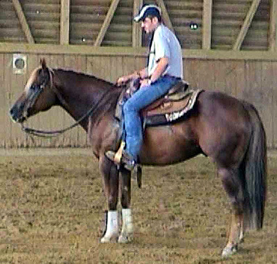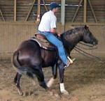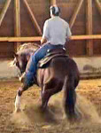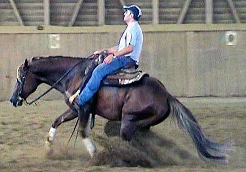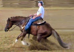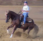 Ich lerne Poco 3-jährig im WRZ Lauterbach kennen, wo er schon vor meinem Start als Trainerin eintraf und quasi "auf mich wartete". Das tat ihm sehr gut, er wurde dort schon etwas aufgepäppelt, denn in der Aufzucht hatte er nicht gerade optimale Verhältnisse vorgefunden. Zu Reiten war Poco ein Traum. Er lernte schnell und war äusserst talentiert. Auch beim Decken war er so leicht zu handeln und selbst schwierigste Stuten konnten problemlos von ihm gedeckt werden. Als mein Partner Markus mir meinen grossen Traum, Besitzerin von Poco zu werden, erfüllte, war ich überglücklich und hatte grosse Pläne, vor allem in Bezug auf Cutting. Leider war Pocos Darm aufgrund mangelnder Entwurmung im Fohlenalter stark beschädigt und auch zwei Kolik-Ops innerhalb von zwei Tagen konnten ihn nicht retten. Mein Dank gilt der Tierklinik Dr. Bosler in Langenau, der nichts unversucht liess und wir trotz traurigem Ausgang unseren Poco in den besten Händen wussten.